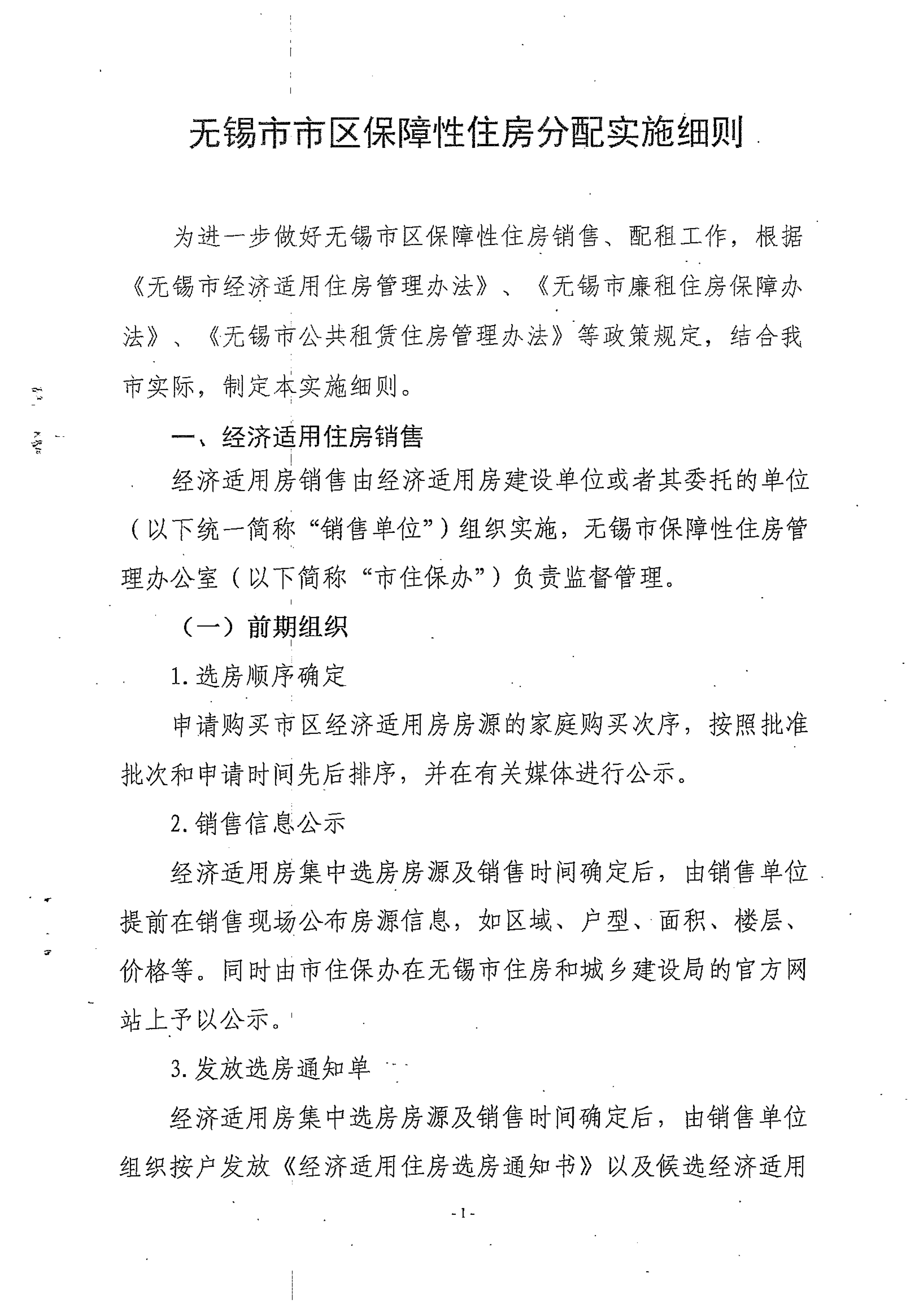 关于印发《无锡市市区保障性住房分配实施细则》的通知