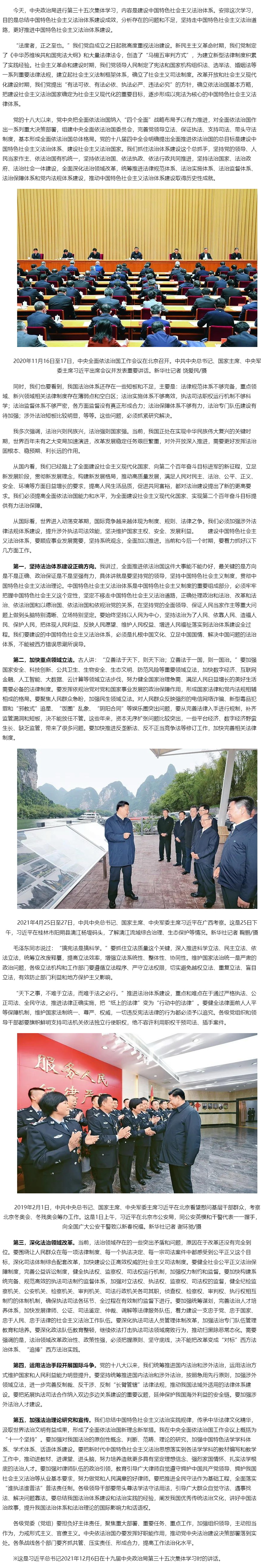 习近平:坚持走中国特色社会主义法治道路 更好推进中国特色社会主义法治体系建设