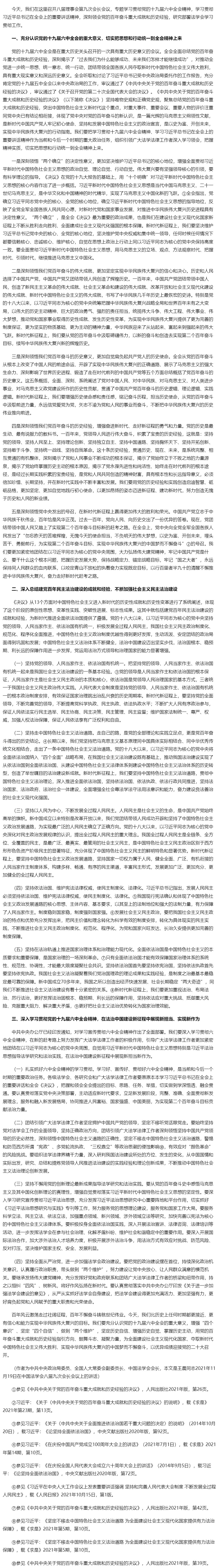深入学习贯彻党的十九届六中全会精神 为实现第二个百年奋斗目标贡献法治力量