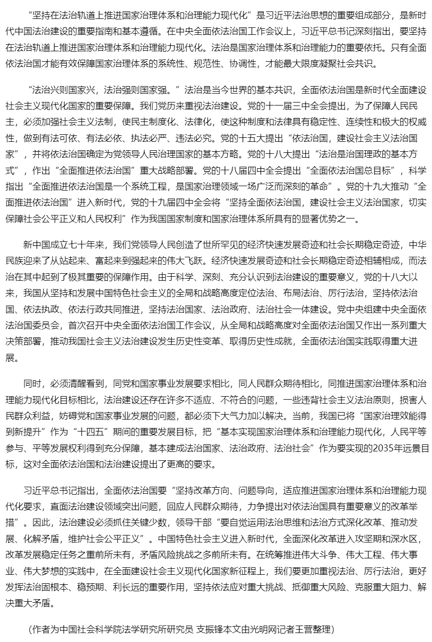 在法治轨道上推进国家治理体系和治理能力现代化
