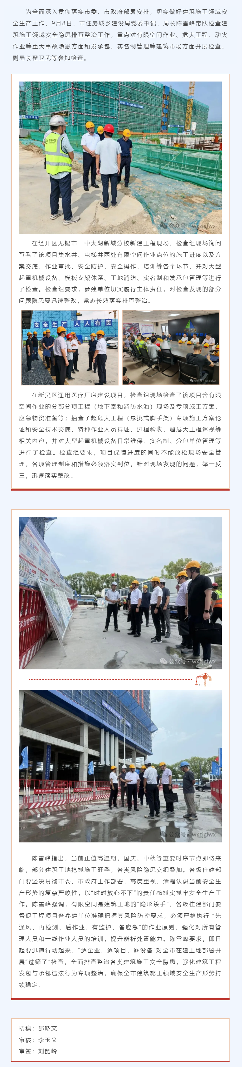 陈雪峰带队检查建筑施工领域安全隐患排查整治工作