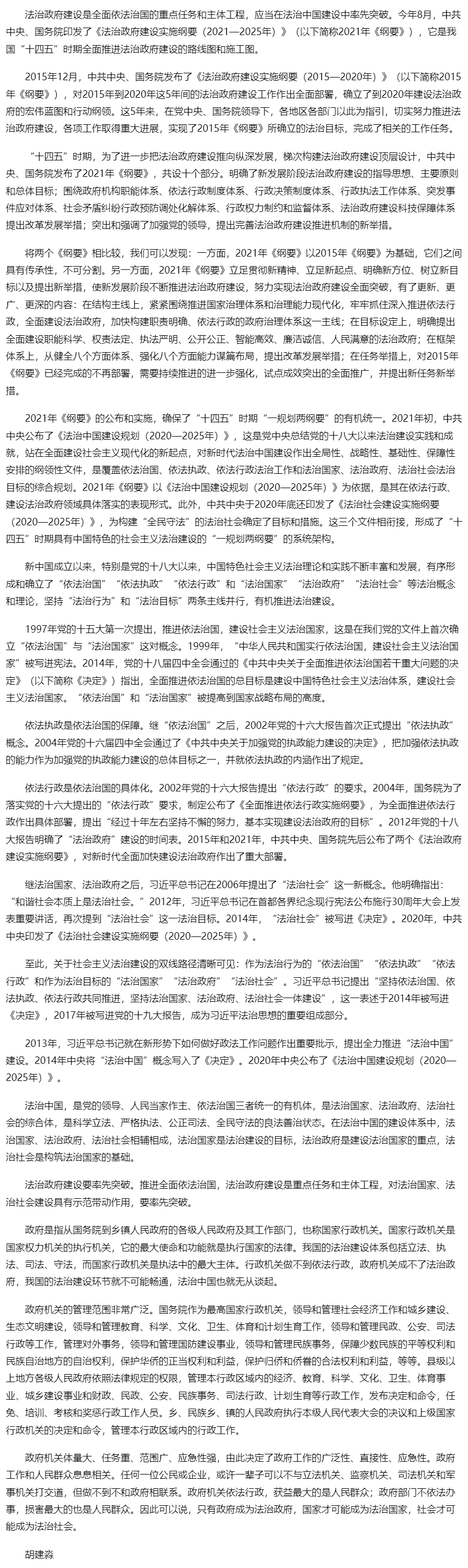 法治政府建设是全面依法治国的重点任务和主体工程